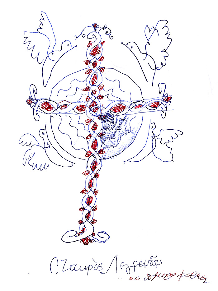 On Saturday 10the of May, 2014, in the theater “TRIANON” in Athens a movie with titled “THE ICONOGRAPHY IN LIGHT OF HOLINESS" was projected; with Stella Arkenti, as producer and Sotiria Adam as music director, showing the ARTISTIC WORK of Fr Stamatis Skliris. The speakers were: Fr. Petros Minopetros, film director, Haris Kambouridis, art critic, and Demetrios Kyriazis, psychiatrist. At the end of the event, Fr Stamaris Skliris signed the DVD of the movie on the spot, and drawn on each of them a sketch, a total of 60 drawings. Some of them are displayed here.