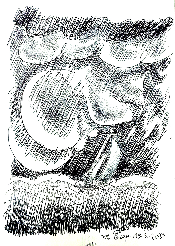 The drawing from which came a series of painting named "The Boat we are Waiting for".